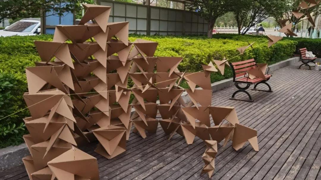 4月16日,外围买球的app十大平台2020级建筑一、二班于欣园西门前举行瓦楞纸搭建活动。活动由20级建筑系举办,两个建筑班自由组队,每一组都带来了精彩的瓦楞纸搭建作品。