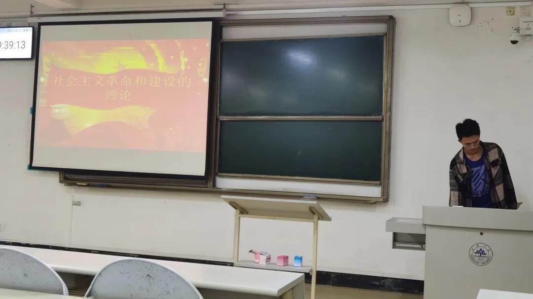 讲解结束后,章焘、张跃兴等同学有感而发,上台讲述了自己对于新中国发展血泪历程的感动之处。他们分享了自己熟知的社会主义改造时期的奋斗故事,像铁人王进喜、雷锋等。他们的事迹感动了每位在场的同学,团员们都对这些先锋的无私奉献与奋斗牺牲表示由衷的钦佩。