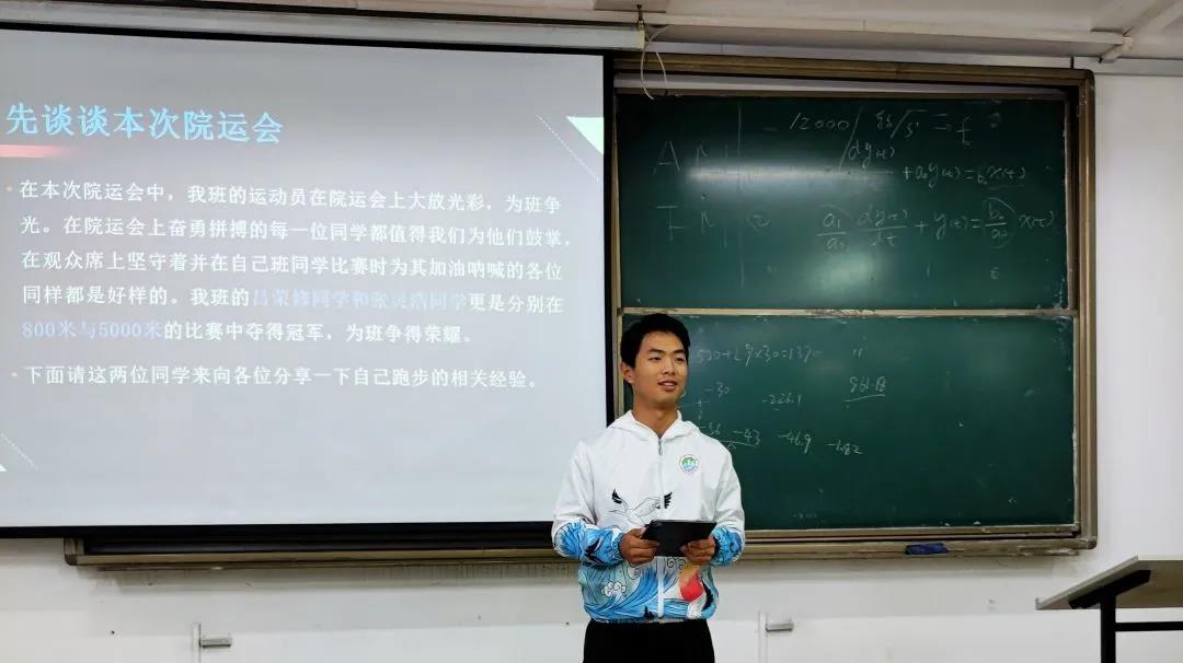 会上,张灵浩和吕荣修为同学们分享运动经验和感悟。从体育比赛可以窥见人生道路,参加院运会活动既是一场竞技也是一次心境和体能方面的教育。吕荣修和张灵浩鼓励同学们积极参加体育锻炼,报名参加比赛项目。明确比赛意义,不因失败而失落,于自己而言,报名的那一刻便已经成功了。
