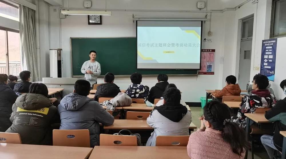 为帮助同学们明确考试规则激发同学们的学习热情,12月21日下午4时,2021级土木一班于教学楼开展了诚信考试主题班会暨考前动员大会,班主任刘玉萍、班长何金文主持,土木一班全体同学参加。本次会议让同学们明确了考生准则,积累了学习方法,为同学们的复习提供了极大帮助。