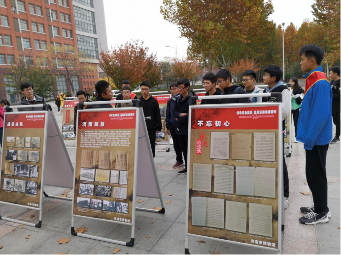 活动简介:博物馆不仅是展示我国优秀文化的场所,也是当代大学生学习知识,培养情操的第二课堂。由此,我们班级借着本次手拉手志愿服务大赛的机会,联系到了济南市博物馆的工作人员,开展了“博物馆进校园”之济南战役历史图片展,带领大家体会图片背后的济南战役革命精神,使大家可以在校园内拓展历史知识,缅怀先烈。11月3号,班内同学前往济南市博物馆开展实地志愿活动。11月7号,协助博物馆工作人员在校内举办展览。