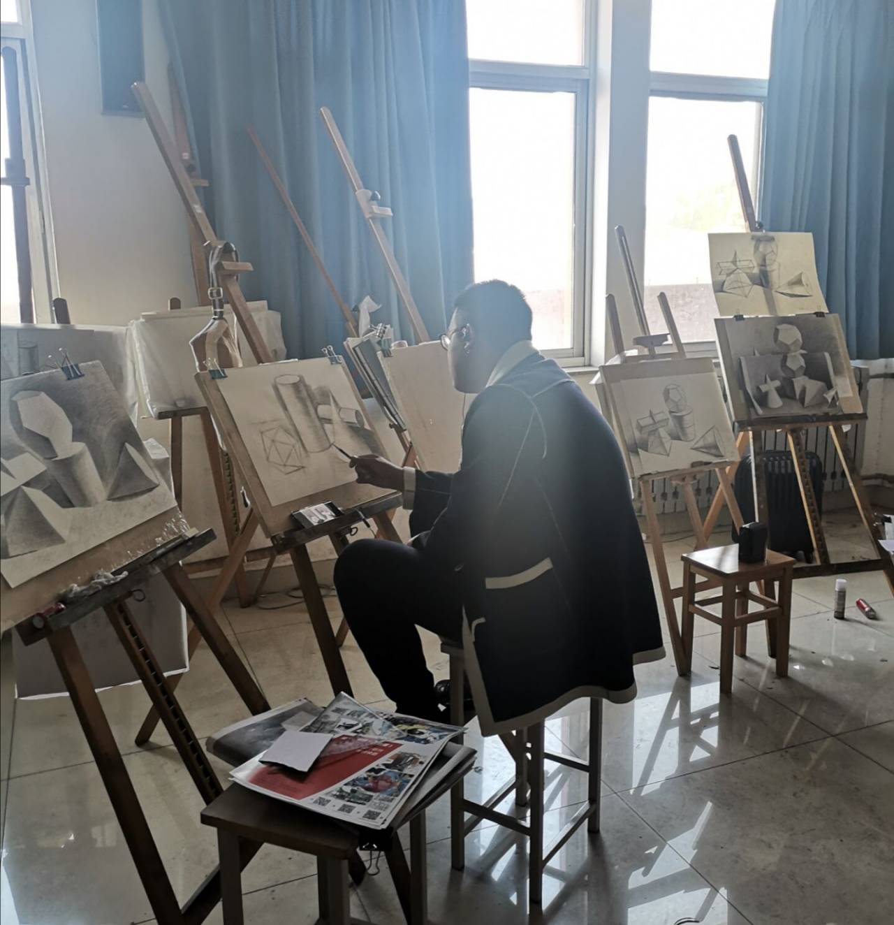 从10月23日至11月10日共21天,同学们欣赏高雅音乐,并在纯音乐的熏陶下绘图。一致的感觉体验,统一的活动地点,拉近了建筑二班同学们的距离。