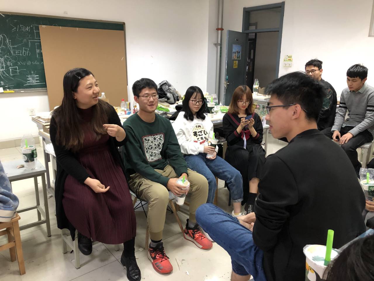 冉向同学们介绍了此次班会的目的。希望通过此次班会来增强班级凝聚力,形成一个爱学习爱生活,团结互助,积极向上的班集体。首先,朱瑞冉总结了一下班级学习和生活方面的现状,并鼓励同学们大胆指出班级有待提高的地方。随后,同学们积极踊跃地发表了自己的意见和建议,涉及了班级专业教室的卫生维护,集体活动的组织方式,班级事务的解决办法,以及同学们之间感情的增进等各个方面。针对同学们发现的问题,朱瑞冉带领同学们一同集思广益,来制定出同学们都满意的解决办法。