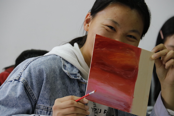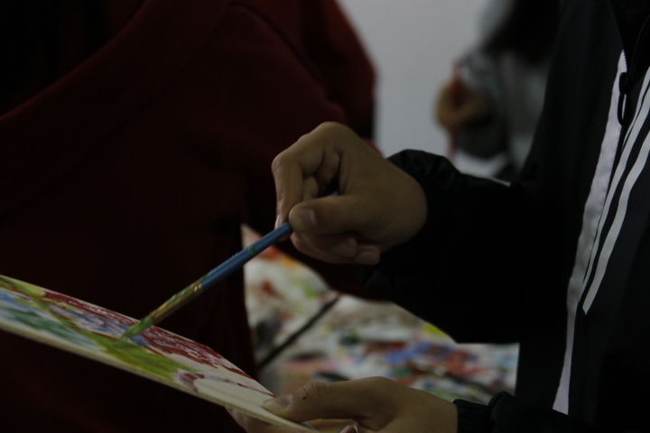 在此次活动中,同学们发挥专业优势,利用课余宝贵的四个小时,用事先采集好的木牌,颜料等材料进行志愿树牌的制作。树牌上绘有精心设计的水粉画,并标明了树的名称等信息,起到了一定的科普作用,与“认识树木、亲近自然“的目的相呼应。考虑到同学们丰富的想象力,牌面的制作除了对基本信息要素做了要求,其余部分全由同学们自由发挥。木牌的色彩或清新或浓重,装饰的图案既有可爱的动漫人物,也有抽象的星云河瀚。在绘画方式上,同学们也做了创新:徐巍珂和陈洁灵活利用画笔,绘制了泼洒墨点的效果;卢逸用牙签刮画,做出了有厚度、有微小体量的漩涡图案。