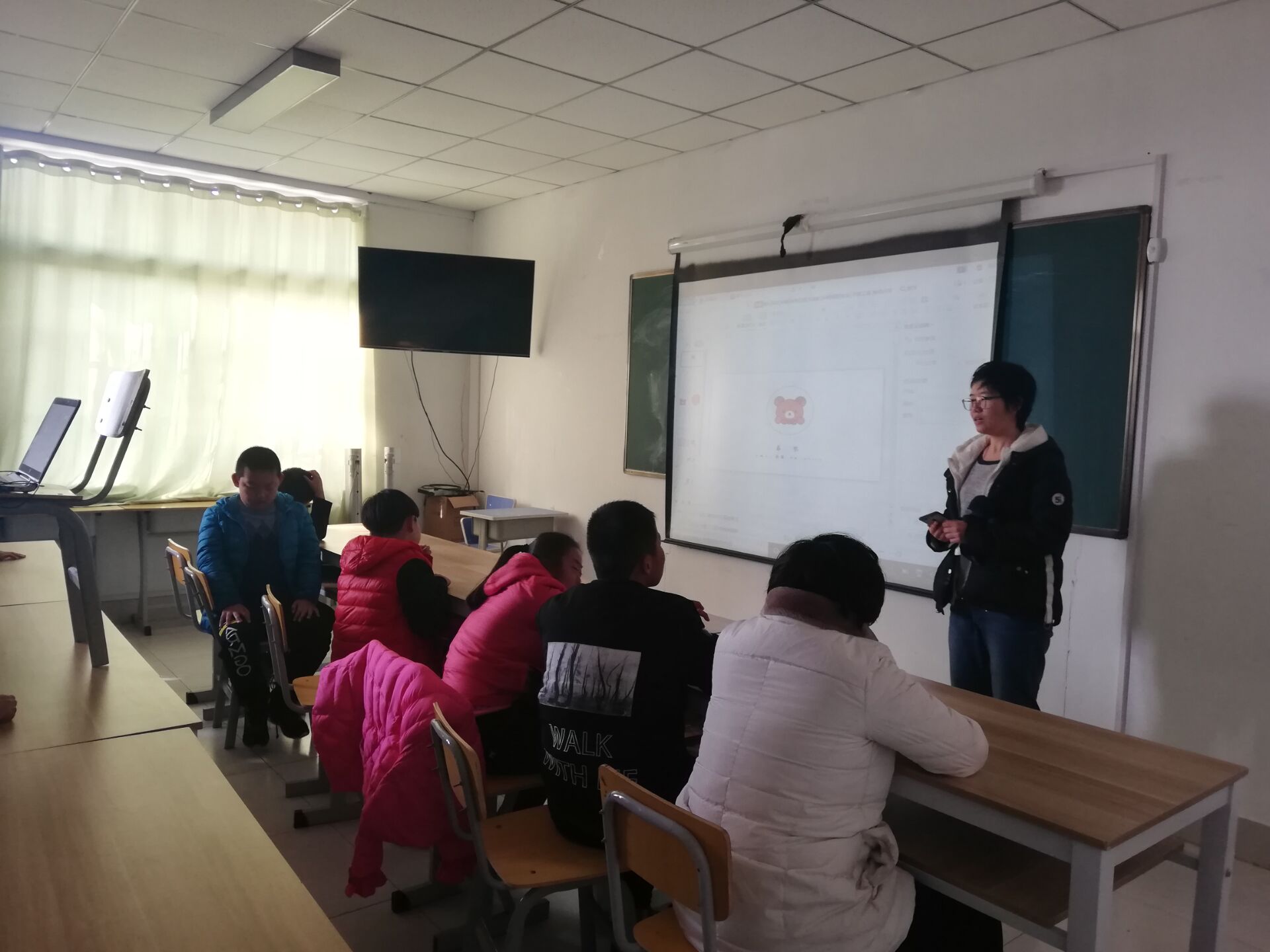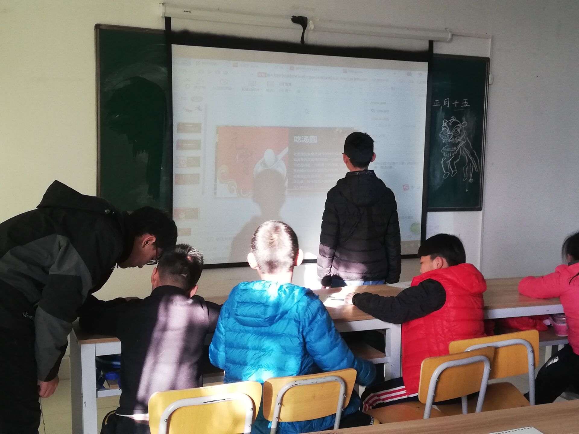 11月16日下午2点,王孟晖、王璨等5人抵达星神特殊儿童福利中心,老师们对大家的到来表示热烈欢迎。随后5位志愿者根据传统节日的时间顺序开始上课。一开始,主讲人采用大部分依靠电脑讲述加少量绘画的模式进行上课,孩子们不理解内容也不给予回应,沉浸在自己的世界里,效果未达预期。因此,第一堂课结束后,小队成员迅速调整,主讲人改用板书加绘画的模式展开课程,并鼓励孩子们跟自己一起写写画画,另外4名志愿者帮助孩子跟上老师的进度,鼓励学生积极回应。张乐凯通过讲解加绘画的模式带孩子们了解元宵节,王孟晖则用简单的粽子和龙舟等内容讲解端午节,效果明显得到提升。最后孩子们一起画出老师讲解的中国传统节日,甚至有的孩子主动与老师交流,请老师帮忙画飞机,公主等造型。