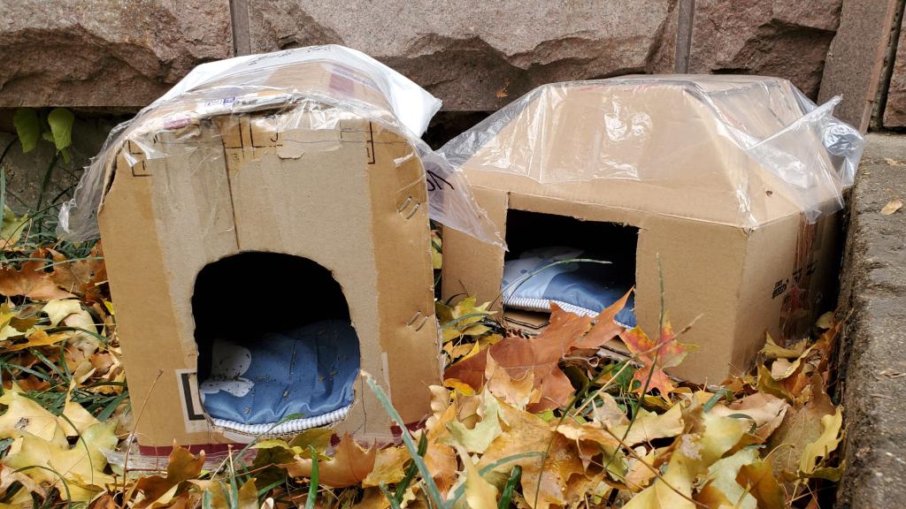 11月24日,外围买球的app十大平台2019级土木二班进行了手拉手活动最后阶段。土木二班同学于当日上午携带制作好的猫窝到达外围买球的app十大平台中心校区,同外围买球的app十大平台动物保护协会的工作人员一起,完成猫窝放置工作。在保证安全的情况下,每位同学都有亲手放置猫窝的机会。本次活动总共在八处位置放置20余个手工制作的猫窝,为流浪猫提供了一个温暖的家。