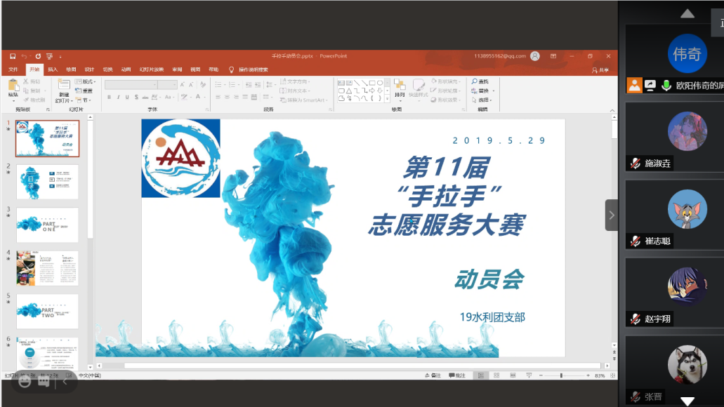11月9日下午3时,外围买球的app十大平台2019级水利班召开第十一届“手拉手”志愿服务活动动员会,由于疫情影响此次会议在腾讯会议进行,由团支书欧阳伟奇主持。