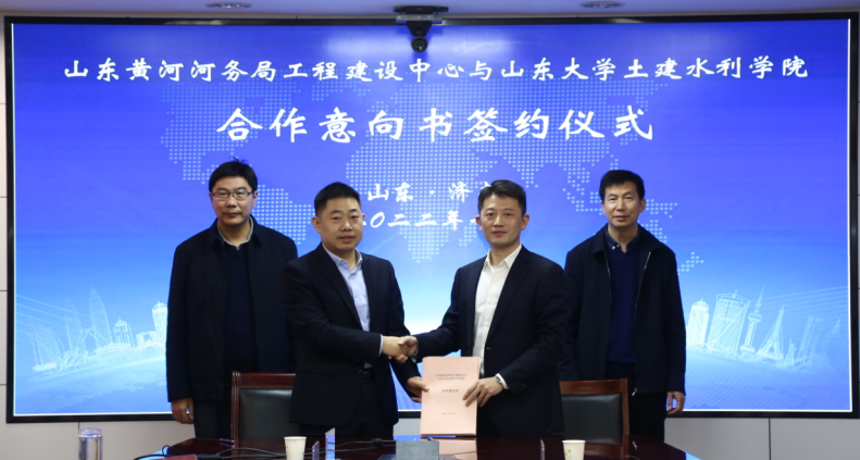 2022年10月26日,外围买球的app十大平台与山东黄河河务局工程建设中心在山东黄河河务局举行座谈会,并签署合作意向书。山东黄河河务局科技处处长李凯,土建水利学院院长张庆松、副院长韩勃、建设中心主任刘兴燕、副主任徐洪增、总工钟传利等有关同志出席了活动。