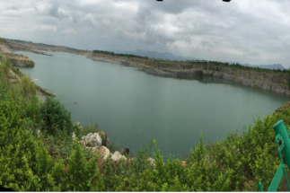 图1 华润平南矿坑(丰水期被淹)及Y01(日涌水量7.12万m³)涌水点
